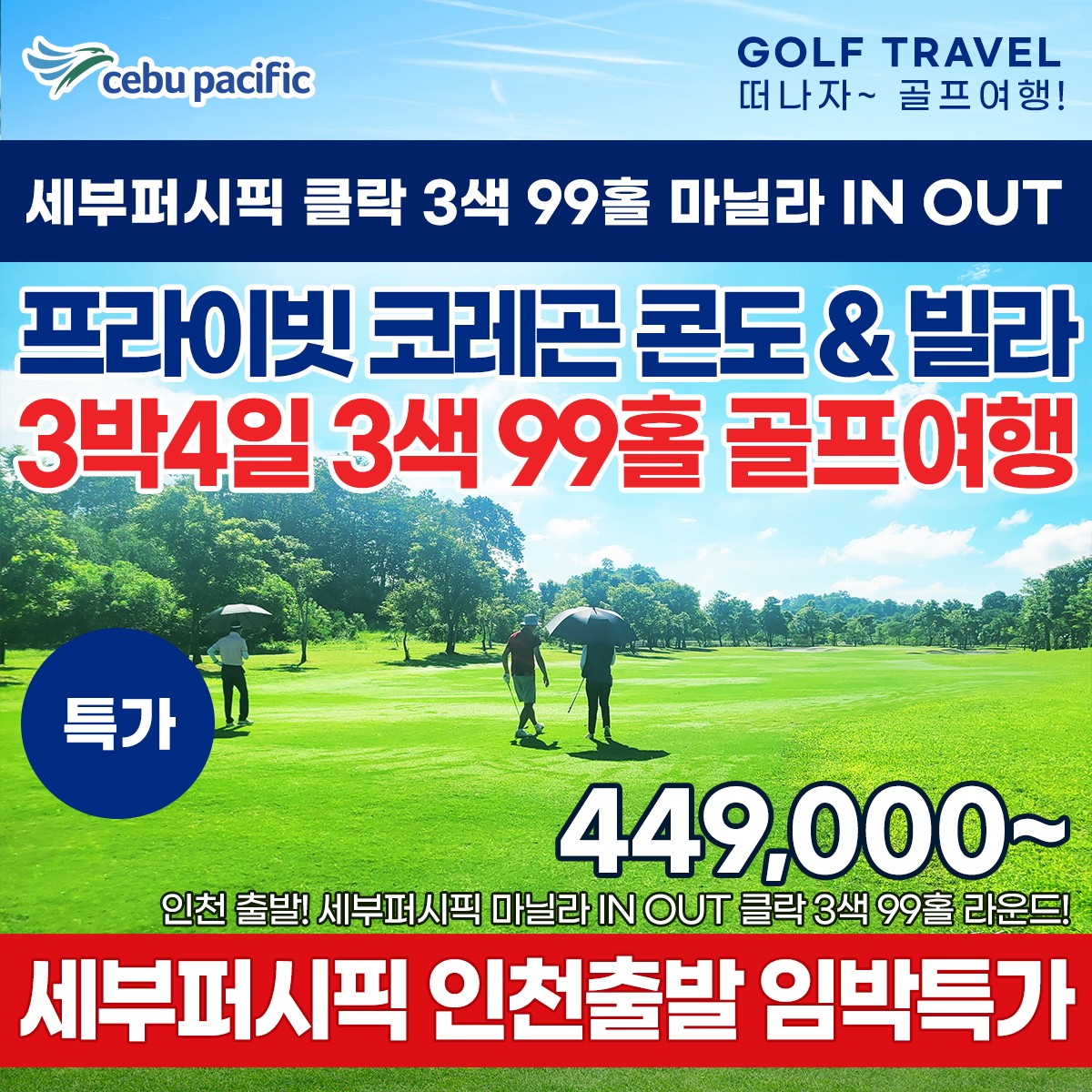 ▶본 상품은 18/27홀 의무라운드 상품으로 개인적인 사유로 라운드 불참 시 18/27홀에 대한 캐디/카트비용은 현장에서 지불하셔야 합니다.차량은 전용차량이 아닌 셔틀로 운행합니다. ▶불포함 내용은 한국인 오피스에서 전일정 다 의무라운딩 비용과 미팅&샌딩 비용을 걷고 있으니 라운드 전 한국인 오피스에서 지불하시길바랍니다. 지불시 성함옆으로 지불한 금액과 싸인 꼭 참고 부탁드립니다. ▶2인 출발시 조인 라운드가 될 수있으며,조인이 않 될시 티타임이 오전 일찍 아니면 오후 늦은 티타임이 될 수있는점 양해부탁드립니다. ▶2인↑ 출발가능한 상품입니다. ▶ 한국인 및 현지인STAFF이 행사하는 상품입니다. ▶ 본 상품은 18홀/27홀 의무라운드 상품으로 개인적인 사유로 라운드 불참 시 표기 라운드 18홀/27홀에 대한 캐디/카트비용은 현장에서 지불하셔야 합니다. ▶ 기본 1인1캐디 및 2인1카트 기준이나, 주말 및 성수기에는 2인1캐디 및 5인승 카트가 나올 수도 있으며, 캐디 및 카트 요금은 동일하오니 양해 부탁드립니다. ▶ 필리핀 현지에서 허용하는 면세규정은 향수 1병, 양주 1병, 그리고 담배 1보루입니다. 따라서, 공항에서 면세품을 구입하셨다면 현지공항에서 짐을 찾은 후 가방에 면세품을 넣어서 나가시기 바라며, 특히 영수증은 별도로 지갑에 보관해 주시기 바랍니다. ▶ 클락 현지공항에서 간혹 랜덤으로 세관에서 골프백 보증금을 징수하는 경우가 있습니다. 확인증은 그룹에 1장 발행되며, 골프 백 1개당 2,000페소 (약 $41) 징수합니다. 출국 시 확인증을 가지고 세관사무실로 가셔서 확인증을 주고 보증금을 찾으셔야 합니다. |