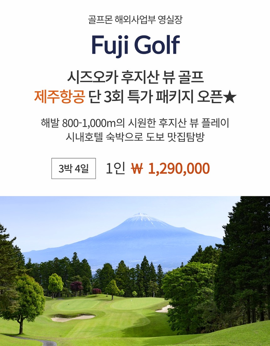 [시즈오카 후지산] 제주항공 단 3회 특가 3박4일 패키지 예약 OPEN