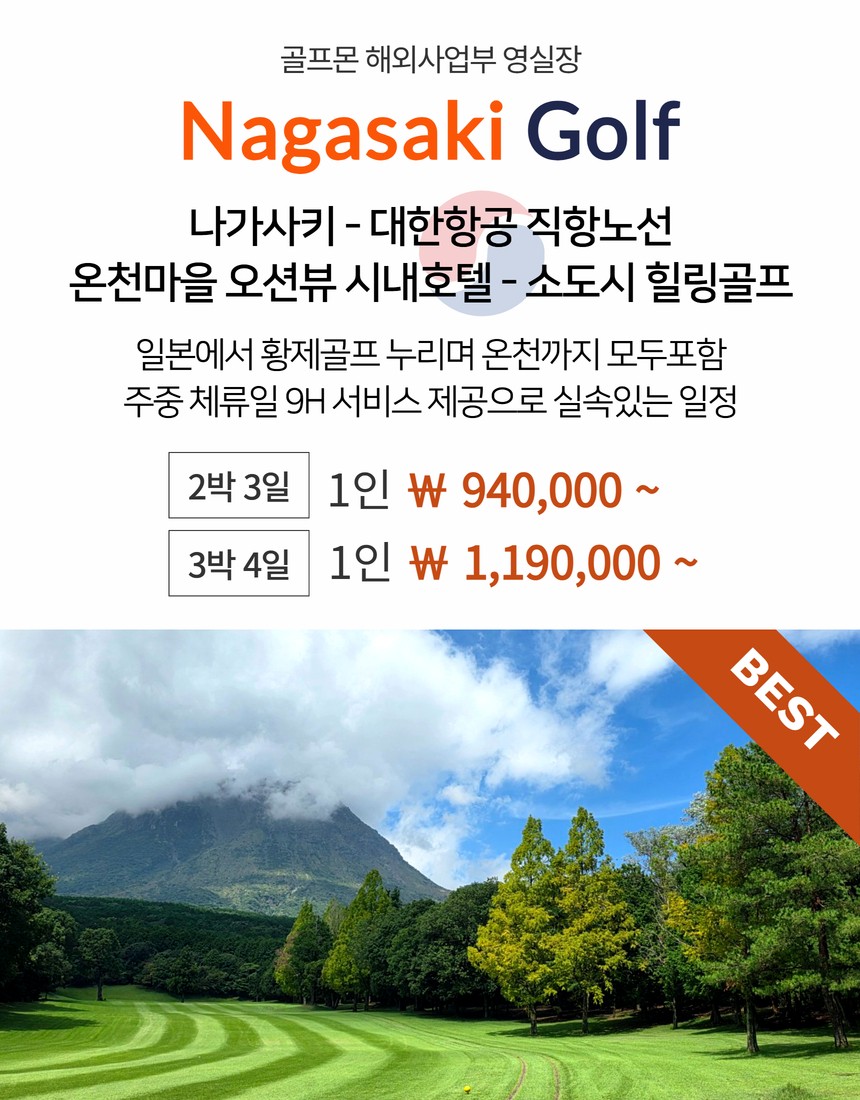 [나가사키] 온천마을 대한항공 - 오션뷰 시내호텔 스테이 (소도시 힐링골프)