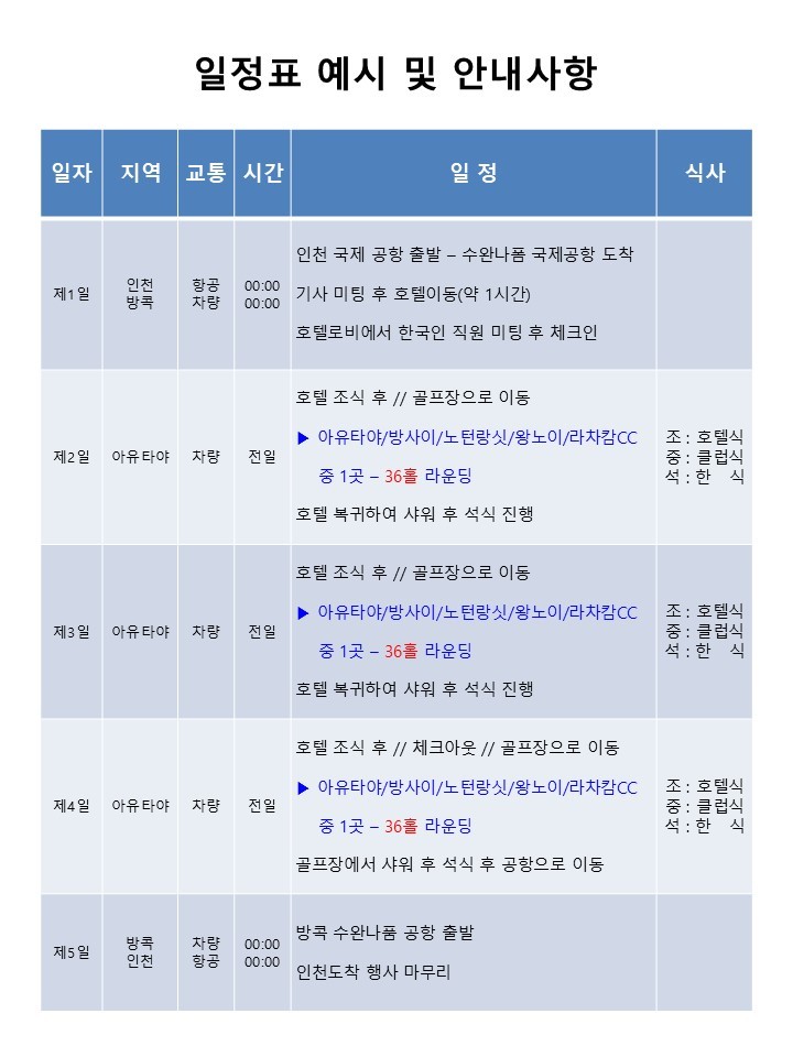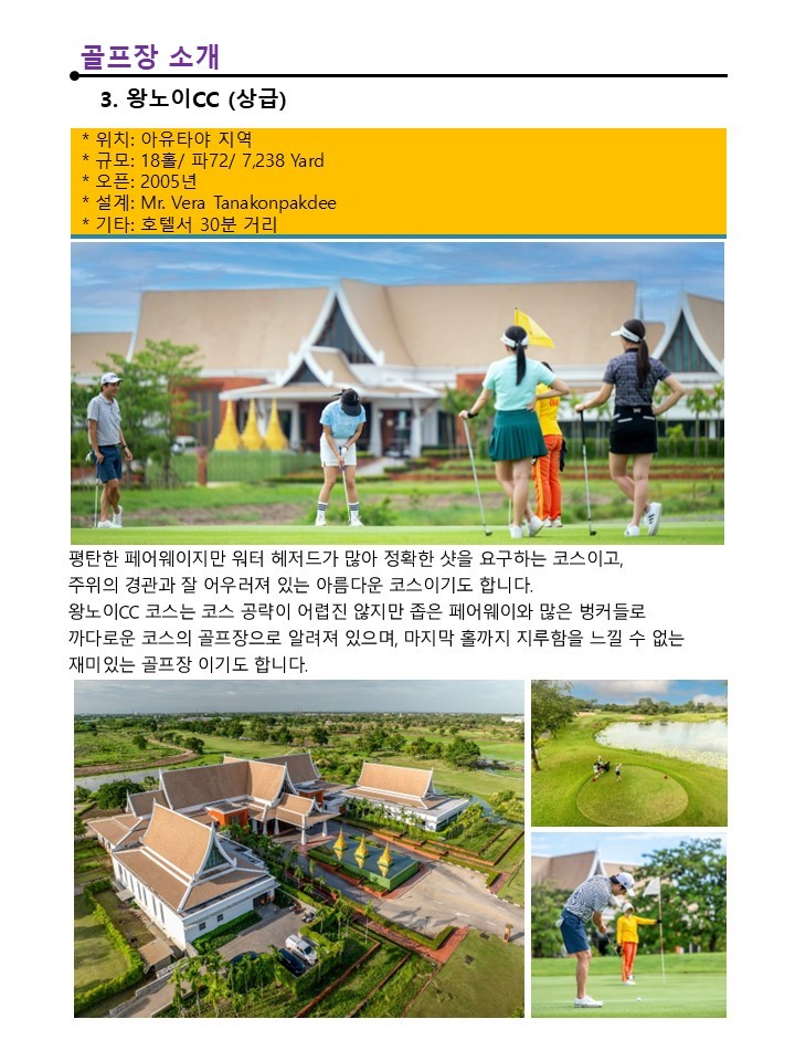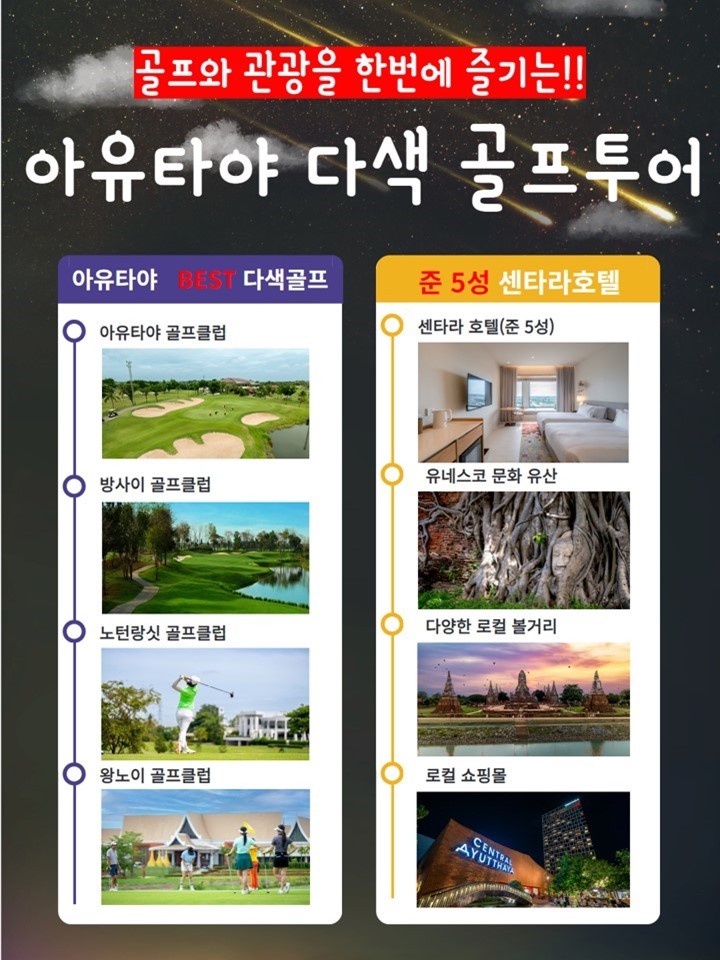 [아유타야] 매일 다른 골프장 플레이 - 준5성 센타라호텔 - 아유타야 시내 자유관광