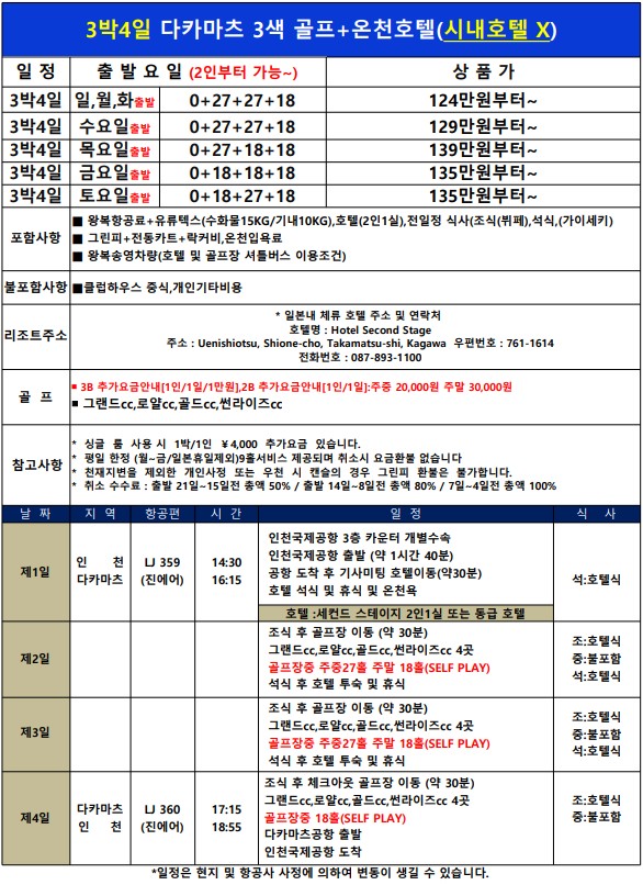 [다카마츠] 온천호텔 3색골프 - 주중 체류일 9H 서비스제공