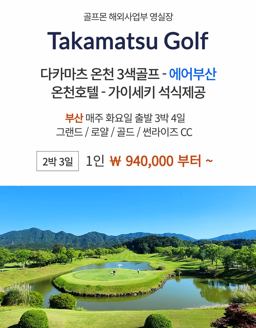 [다카마츠] 에어부산(부산출발) 패키지 / 온천호텔 3색골프 - 주중 체류일 9H 서비스제공