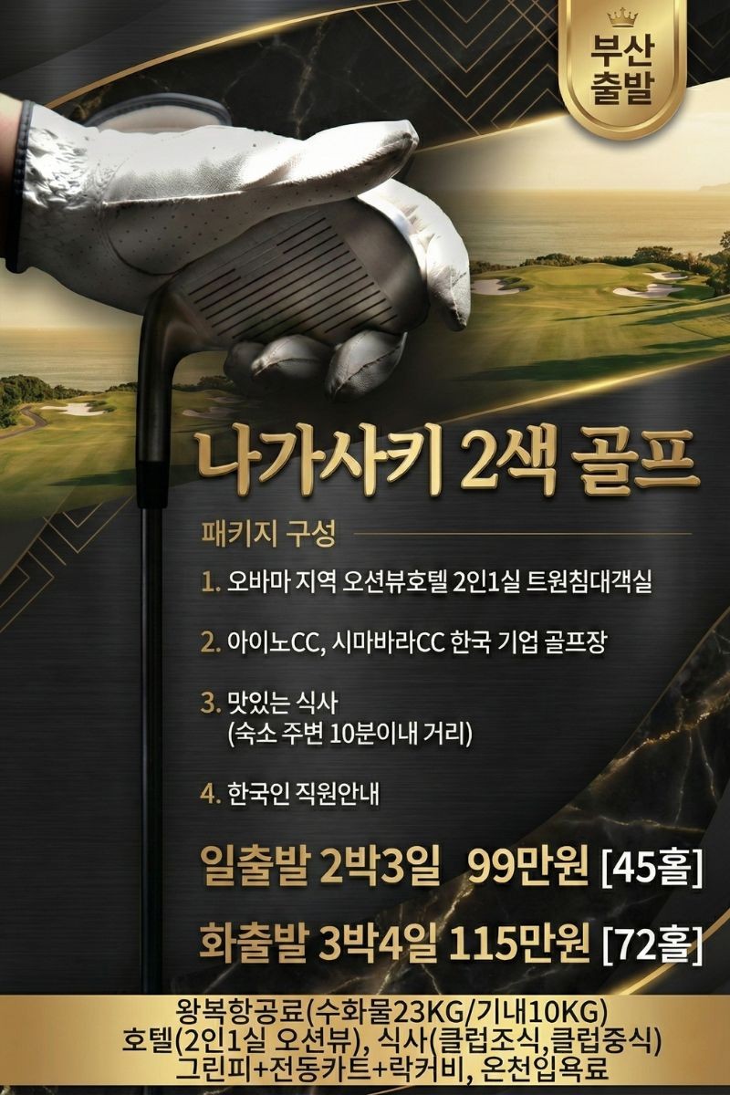▶아이노cc 아이노cc는 나가사키에서 가장 유명한 골프장 중 하나로, 나가사키 공항에서 차로 40분 거리에 위치해 있습니다. 구릉지대형 골프장으로 적당한 오르내림이 있어 골프를 치는 재미를 더해 줍니다. 셀프 플레이 방식으로 운영되며, 전자 유도식 카트를 이용해 편리하게 라운딩을 즐길 수 있습니다.페어웨이 카트타고 편하게 라운딩 가능 합니다.