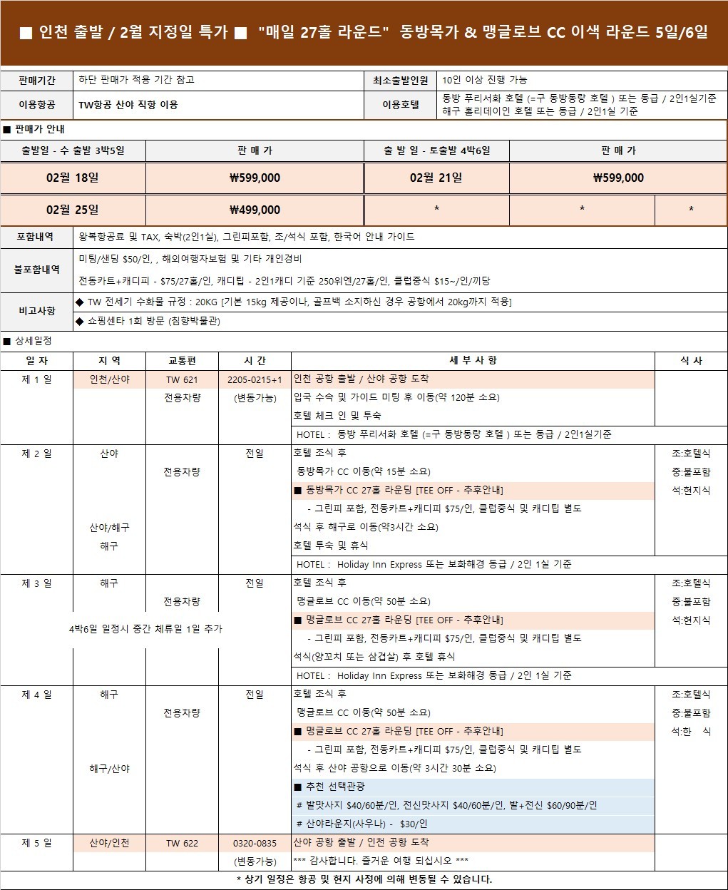 TW청주산야 동방목가&맹글로브 (금)5일/(월)6일