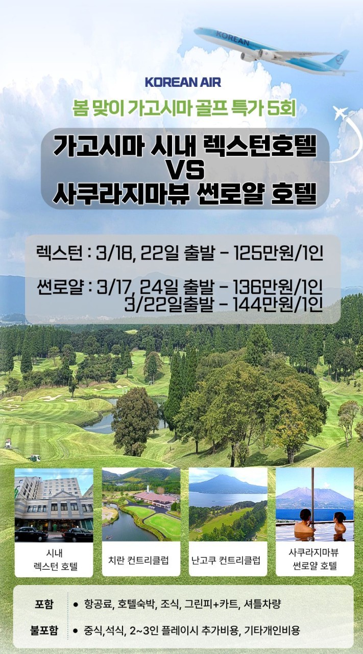 [가고시마] 대한항공 3박4일 - 3월 한정일 시내호텔 or 사쿠라지마 뷰 썬로얄호텔