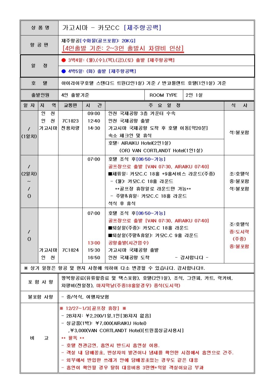 [가고시마] 카모CC 아이라 시내호텔 - 2/19 기준 상품가 업데이트