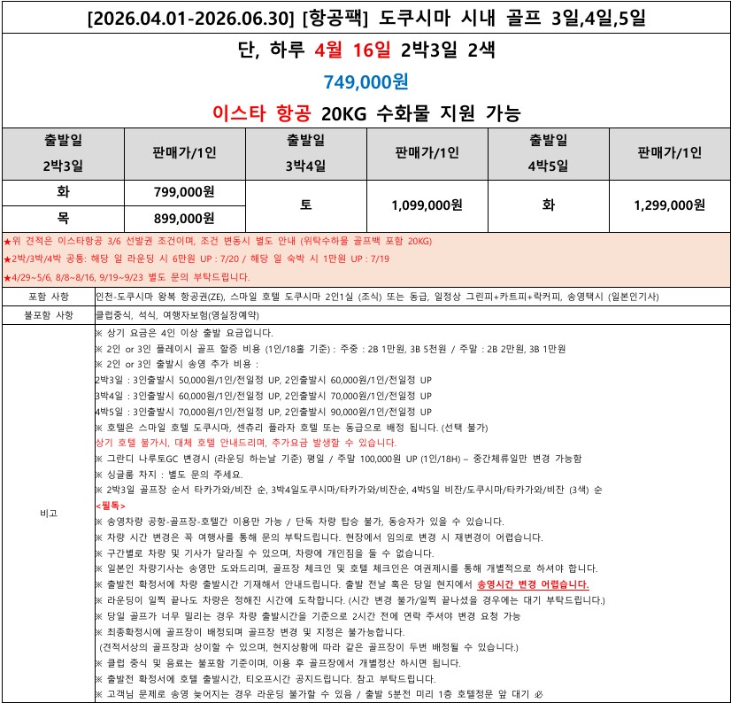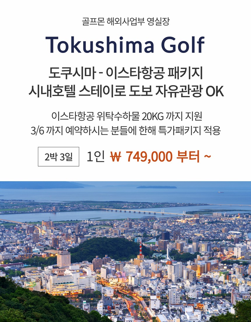 [도쿠시마 시내] 4/16 출발자 한정 1인 749,000원 이스타항공 패키지 / 4월 1일부터 6월 30일까지 화·목·토 출발