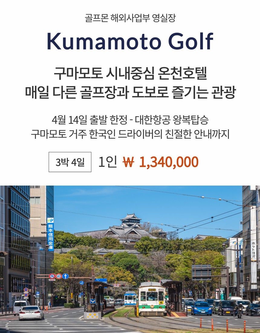 [구마모토] 4/14 출발 대한항공 3박4일 패키지 안내 / 시내 최중심 온천호텔 숙박으로 걸어서 즐기는 구마모토 관광