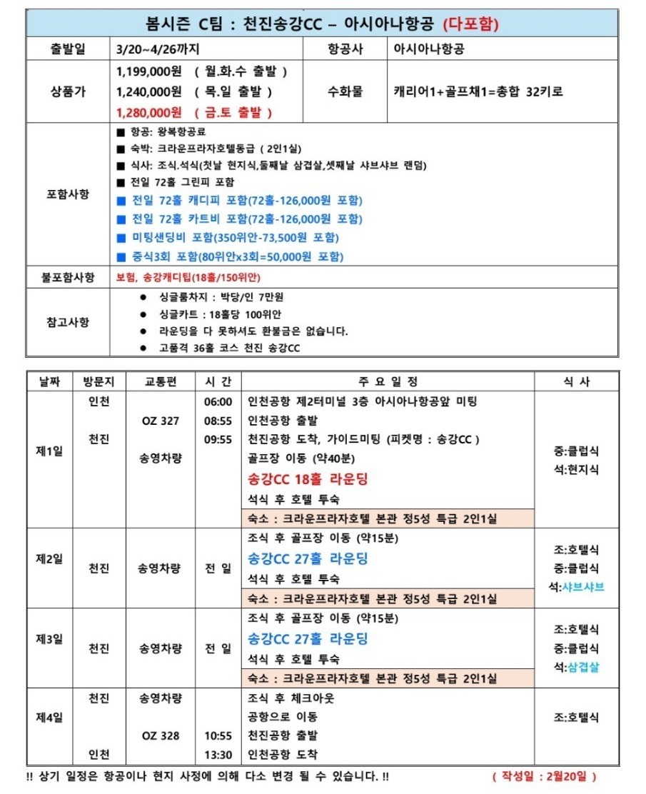 | 🧳 출발일&금액 | 3월 20일부터 4월 26일까지 매일출발