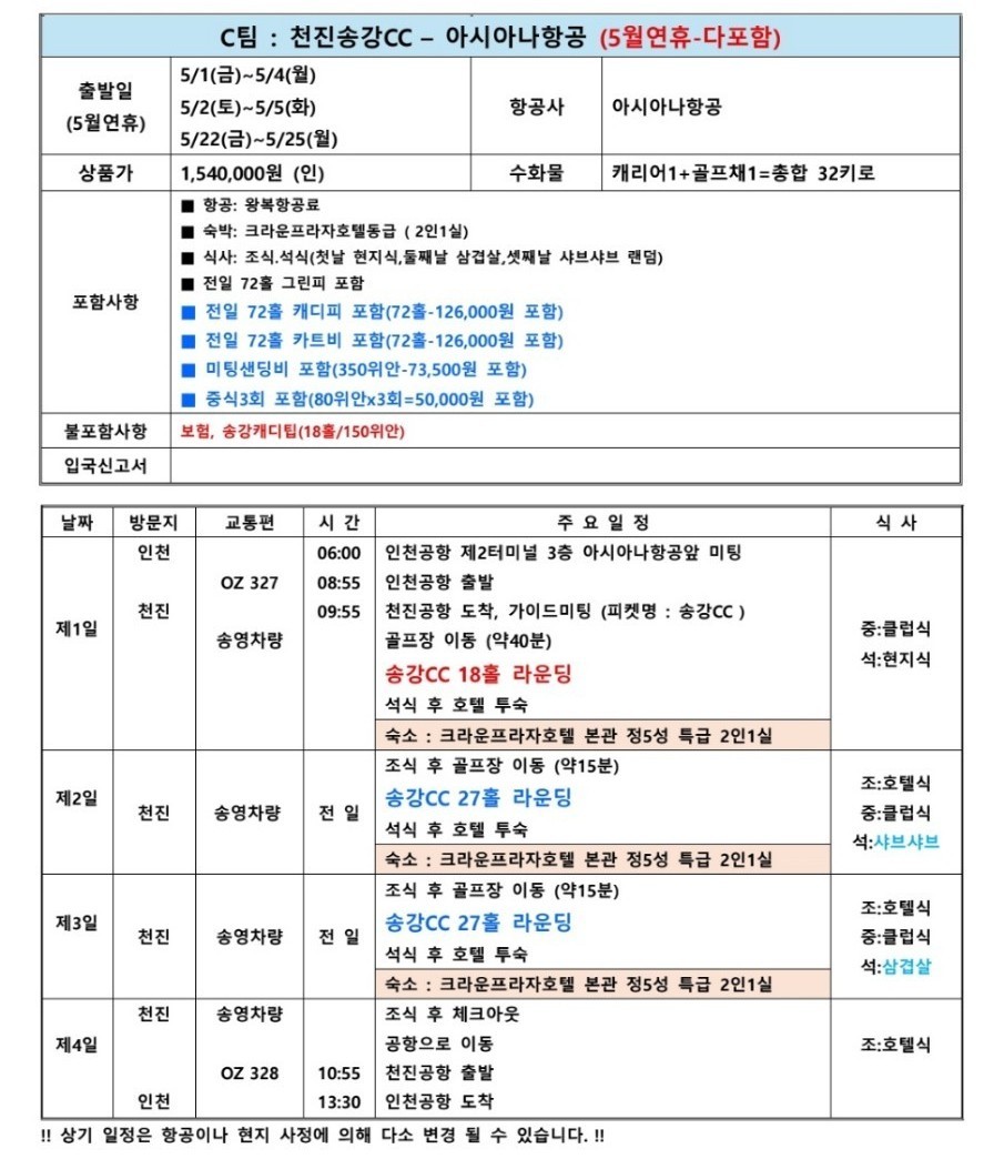 | ❌ 불포함사항 | 캐디팁 150元/18H/1인당