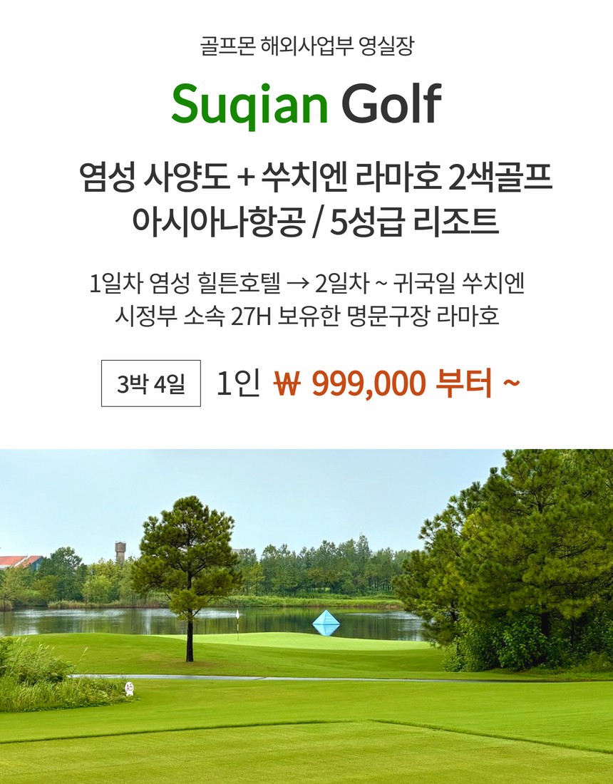 [염성] 사양도 + 쑤치엔 라마호 2색골프 / 시정부관리 27H 보유한 명문구장 라마호 포함 - 아시아나항공 / 5성급 리조트