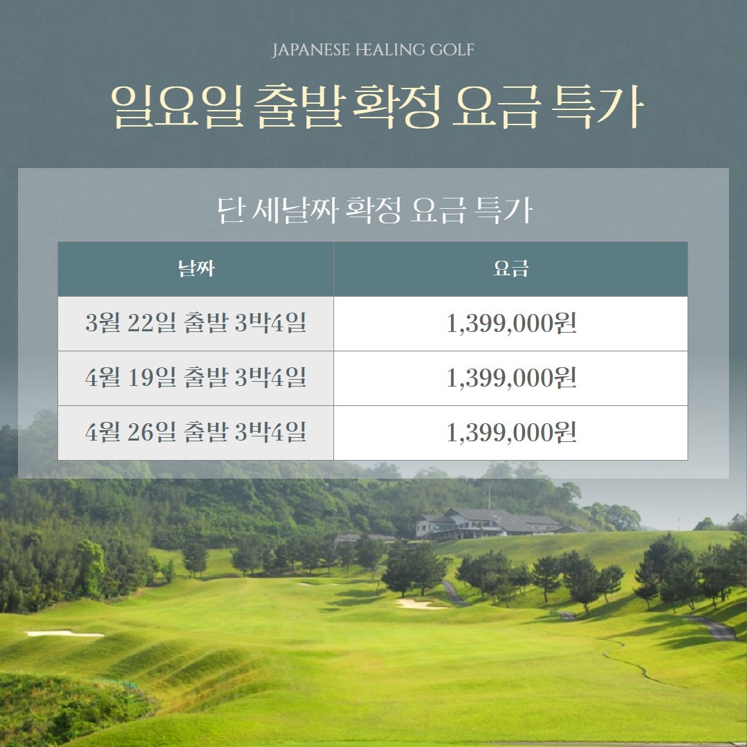 [사가] 3월 22일 / 4월 19일 / 4월 26일 단 3회 - 사가 류토엔 온천골프 패키지