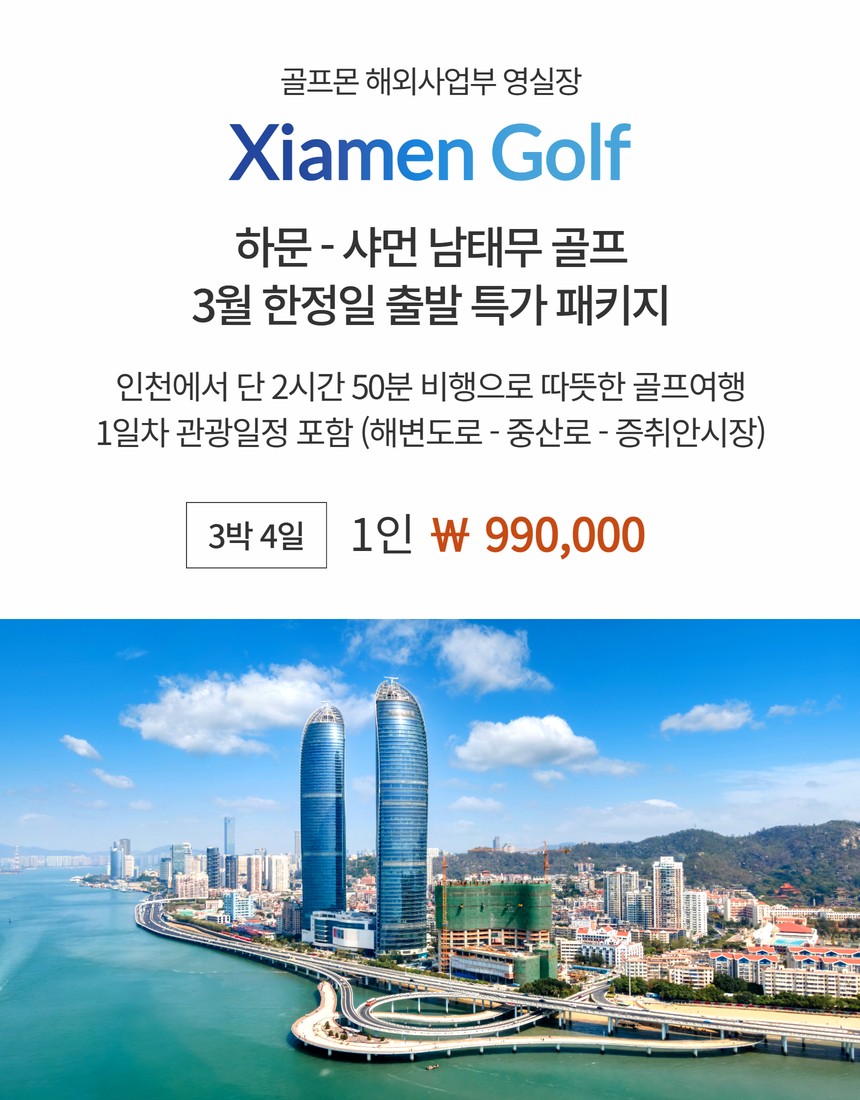 [샤먼-하문] 남태무 골프+관광 / 캐디팁 제외 [모두포함] 3월 한정일 출발 특가패키지