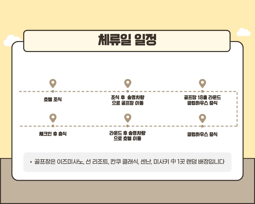 호텔 주변에는 일본 현지 이자카야, 라멘 전문점, 우동·소바 식당, 스시와 해산물 요리점 등 간단한 식사부터 저녁 술자리까지 가능한 로컬 맛집들이 밀집해 있어 자유로운 일정이 가능합니다. 특히 공항 이용객과 현지인이 함께 찾는 지역이라 가격대도 비교적 합리적인 편입니다. 또한 편의점, 드러그스토어, 카페 등이 가까워 간단한 간식이나 생필품 구매도 매우 편리하며, 짧은 숙박 일정에서도 불편함 없이 머무르실 수 있습니다. 조금 더 이동하면 린쿠타운 방면으로 대형 쇼핑몰이 위치해 있어, 라운딩 후 식사나 귀국 전 마지막 자유시간 활용에도 적합한 입지를 갖추고 있습니다. | ||||||||