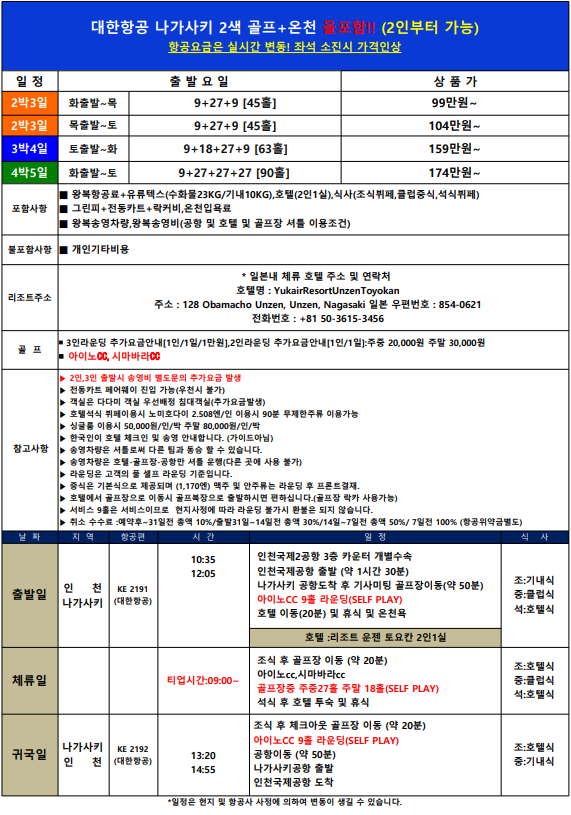 | 🧳 출발일&금액 | ️대한항공 나가사키 고품격 2색 골프 올포함!!