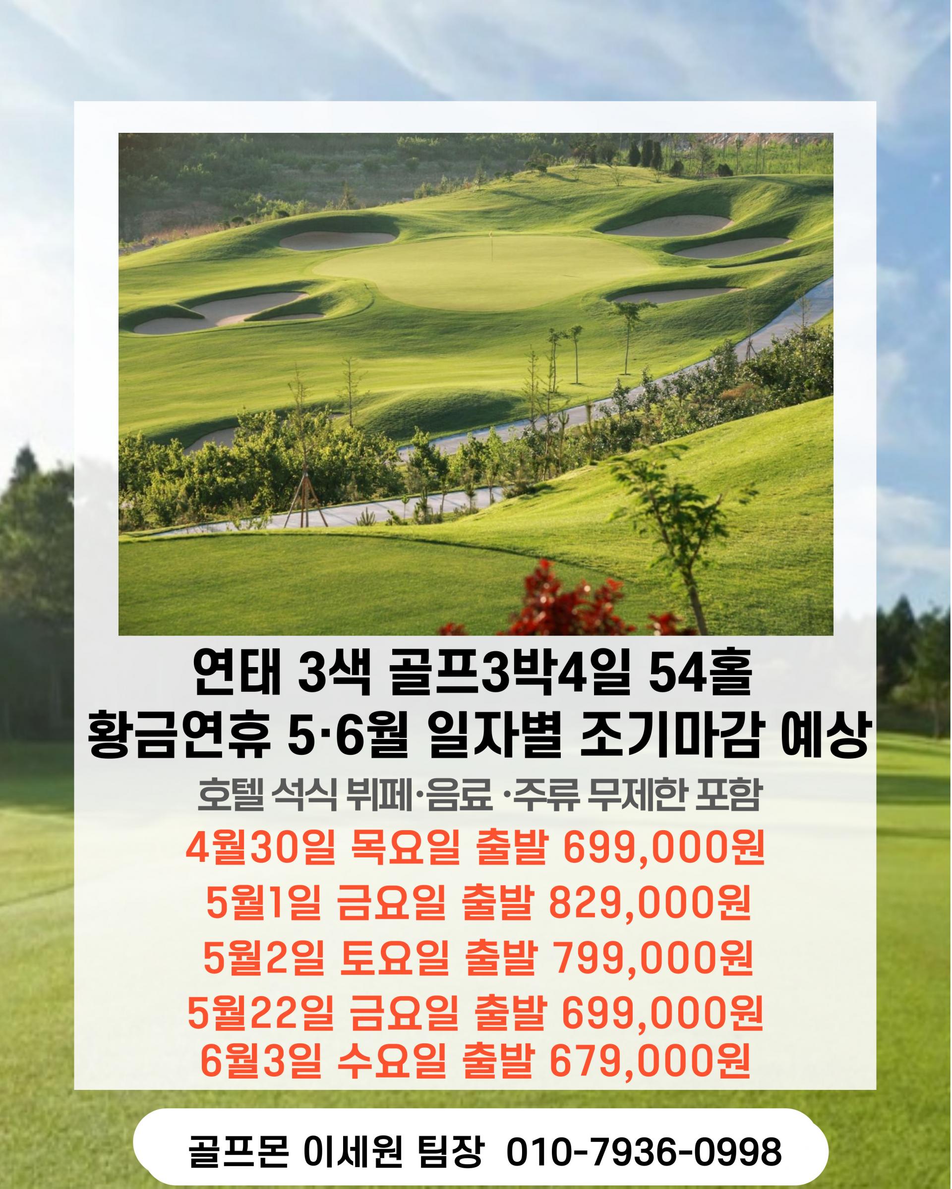 | 🧳 출발일&금액 | 5,6월 황금연휴출발 연태 3색 3박4일 54홀