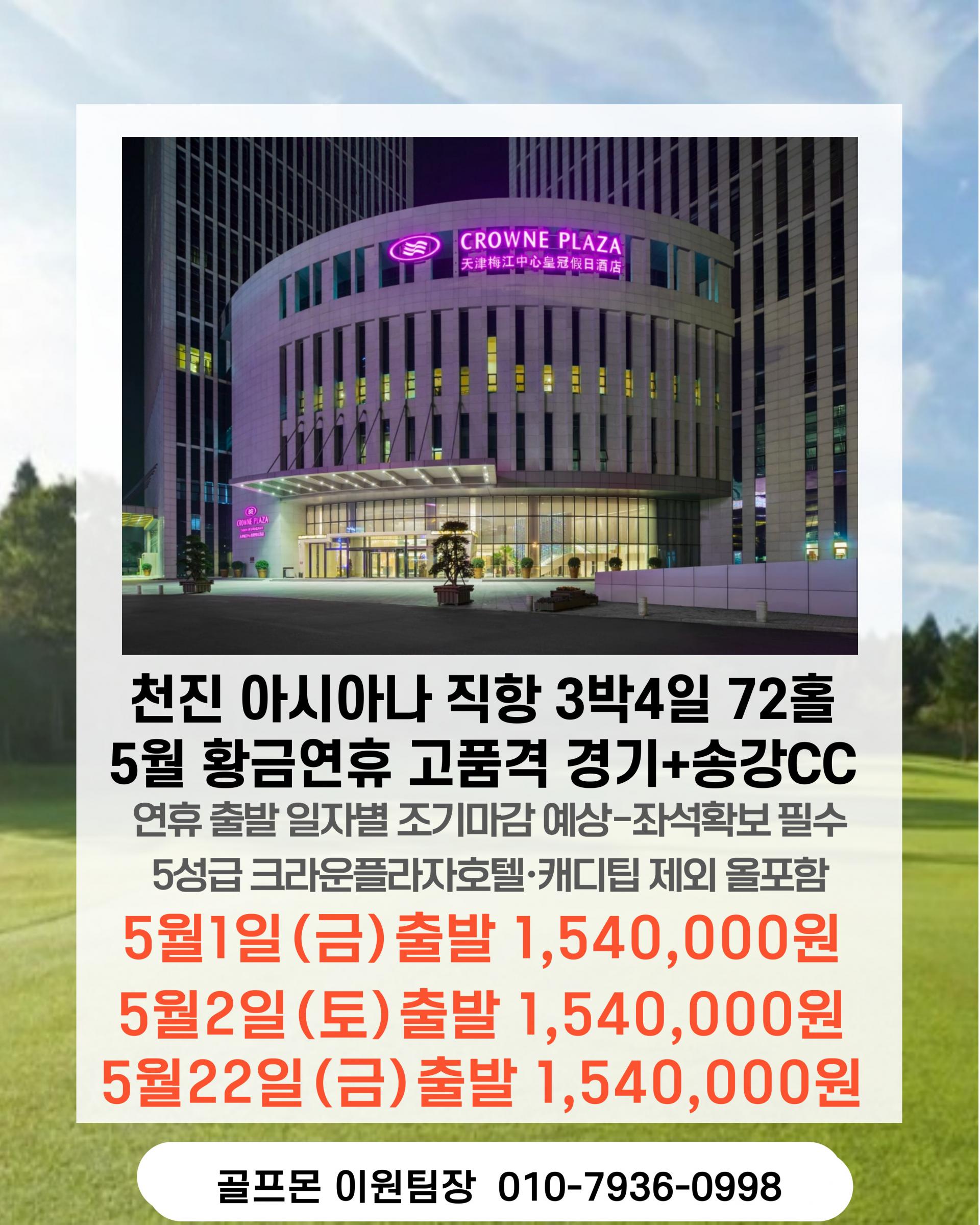 | 5성특급 크라운프라자호텔 천진 크라운프라자 호텔 : 호텔영문이름 : CROWNE PLAZA 호텔전화 : 022-5857-6666 주소: 주소: 천진시 하서구 우의남로 동쪽 (천진매강전시센터 맞은편) 톈진 빈하이 국제공항에서 26킬로미터 떨어져 있으며, 도보로 톈진 지하철 6호선 "메이장 컨벤션 센터"역에 도착할 수 있습니다. 이곳은 톈진 메이장 컨벤션 센터, 시칭 경제 개발구, 톈진 시정부와 톈진 올림픽 센터 체육관과 인접해 있습니다. 유명 관광지 워터파크, 낸시 푸드코트, 고대문화거리 방문도 편리합니다 호텔은 2,000여㎡의 유연한 회의장과 500명과 400명을 수용할 수 있는 2개의 대연회장을 포함하여 10개의 회의실을 갖추고 있어 다양한 종류의 행사 수요를 충족시키고 있으며, 다양한 종류의 비즈니스 미팅, 우아한 칵테일 파티, 가벼운 샴페인 브런치 또는 성대한 결혼식 등의 행사를 개최하기에 이상적인 장소입니다. 또한, 당사의 크라운 홀리데이 회무 총감독과 그 전문팀은, 귀하가 회의 방안을 마련하는 것을 돕고, 귀하가 회의와 활동을 할 수 있도록 "원스톱 서비스"를 제공합니다. 호텔은 시야가 넓고 아늑하며 편안한 객실을 493채 보유하고 있으며, 여기에는 다양한 스위트룸과 아파트가 포함되어 있습니다. 절반 이상의 객실은 창문을 통해 호수의 아름다운 경치를 조망할 수 있습니다. 방 안에는 모두 평면 TV, 위성 채널, 고속 인터넷 인터페이스, 그리고 편안한 작업대가 설치되어 있습니다. 호텔의 실내 수영장에서 자유롭게 수영하고, 현대의 피트니스 센터에서 운동하며, 야외 호숫가를 여유롭게 거닐면 활력을 되찾을 수 있습니다. 호텔의 완벽한 부대시설과 효율적이고 친절한 서비스는 당신을 매료시킬 것입니다.