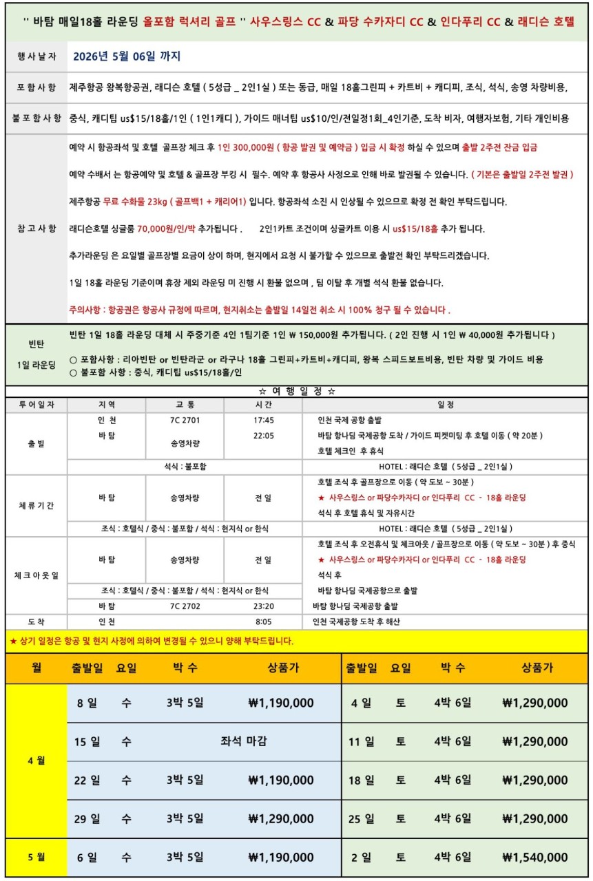 - 단체항공권일 경우 출발 1~3일전 발권합니다.